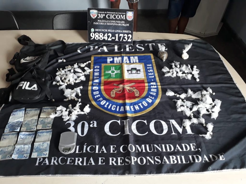 Policiais militares da 30ª Companhia Interativa Comunitária (Cicom), na manhã desta quarta-feira (11/11), detiveram um jovem de 18 anos e apreenderam um adolescente de 17, encontrados em posse de substâncias entorpecentes na Comunidade Coliseu, no bairro Jorge Teixeira, na zona leste.