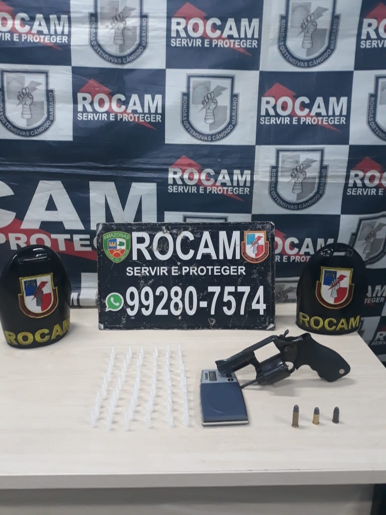 Policiais militares das Rondas Ostensivas Cândido Mariano (Rocam) detiveram, na madrugada desta terça-feira (07/01), três homens suspeitos de porte ilegal de arma de fogo e tráfico de drogas no bairro Santa Etelvina, zona norte da capital. Com eles os policiais apreenderam um revólver calibre 38, numeração suprimida, com três munições intactas, 60 cápsulas de supostamente cocaína e uma balança de precisão.