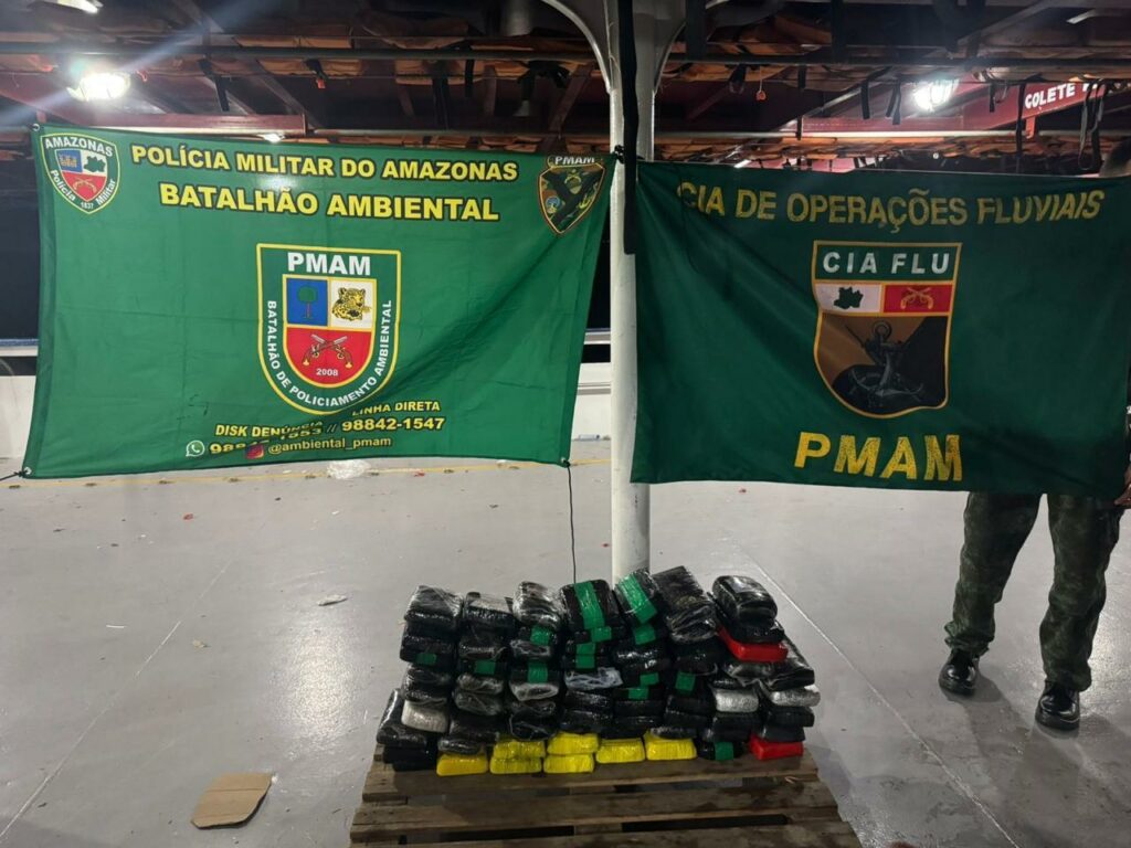 “Acionamos a Companhia de Policiamento Fluvial que, por meio de uma lancha, interceptou a embarcação nas proximidades do porto de Manaus. Durante a revista, com o apoio da Companhia de Cães, foram encontrados aproximadamente 75 quilos de entorpecentes escondidos no porão da embarcação”, explicou o comandante.