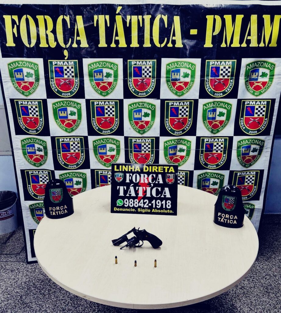 A Polícia Militar do Amazonas (PMAM), por meio da Força Tática (FT), apreendeu, na quarta-feira (17/07), por volta das 22h10, uma arma de fogo e munições, na rua Goiânia, comunidade Parque São Pedro, bairro Tarumã, zona oeste de Manaus.