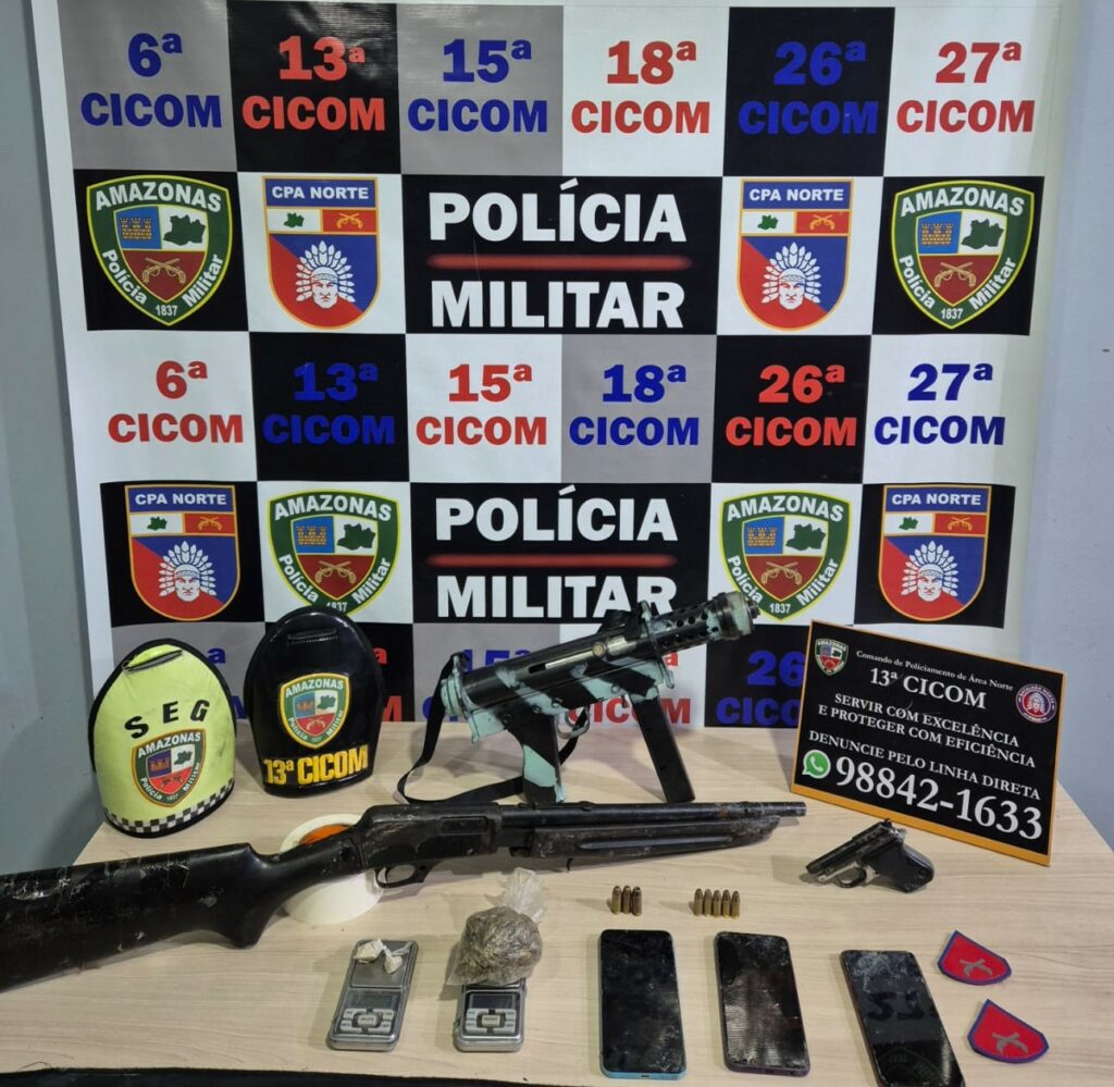 A Polícia Militar do Amazonas (PMAM), por meio da 13ª Companhia Interativa Comunitária (Cicom), apreendeu três armas de fogo, entorpecentes e balanças de precisão, durante a Operação Onça, Ação Ajuricaba, na noite de quarta-feira (20/11). A ação policial foi executada no bairro Cidade de Deus, zona norte de Manaus.