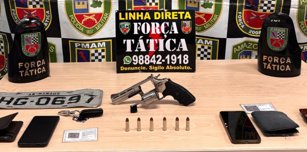 Durante a abordagem, os policiais militares encontraram dois homens, com um dos ocupantes estava um revólver calibre 38, com seis munições. Também foram apreendidos na ocorrência dois celulares, uma carteira e o veículo de placa PHG-0697. Os dois suspeitos foram encaminhados ao 6º Distrito Integrado de Polícia (DIP).