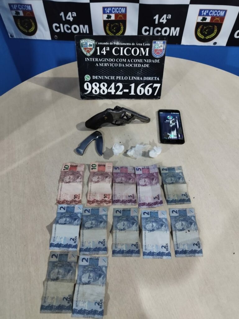 Com eles foram encontrados um revólver calibre 32, três trouxinhas de cocaína e R$ 46 em espécie. A dupla, juntamente com os objetos apreendidos, foi encaminhada para o 14º Distrito Integrado de Polícia (DIP).