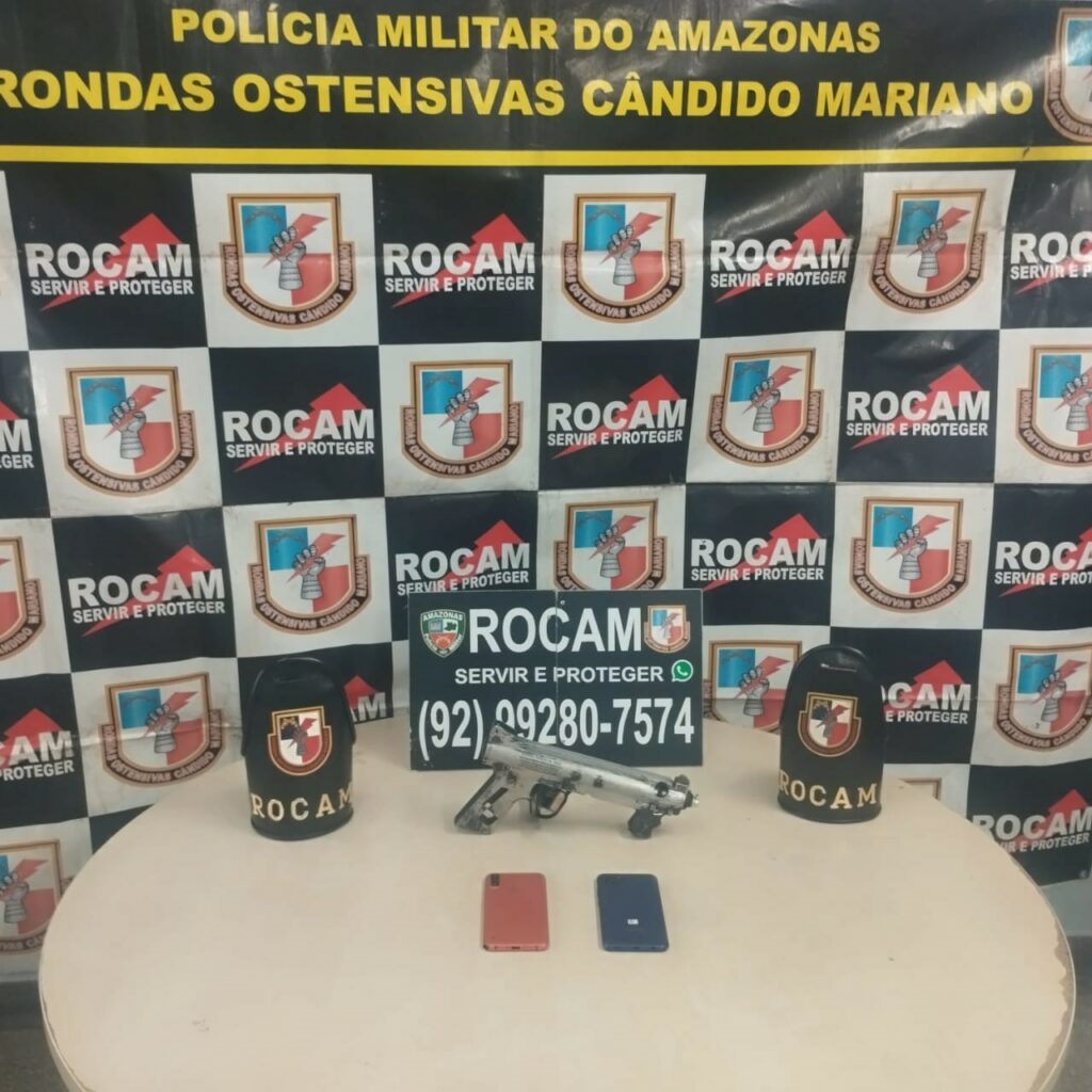 A Polícia Militar do Amazonas (PMAM), por meio das Rondas Ostensivas Cândido Mariano (Rocam), prendeu dois homens, de 22 e 34 anos, por envolvimento em roubo, na tarde de sexta-feira (19/07), no bairro Tancredo Neves, zona sul de Manaus.