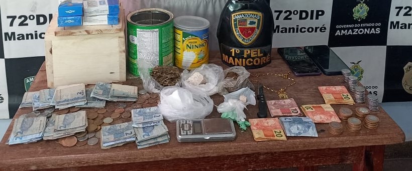 Em Manicoré, distante 332 quilômetros da capital, a equipe do 4º Batalhão de Polícia Militar (BPM) recebeu denúncia anônima informando que havia um ponto de vendas de drogas, na rua Andaraí, bairro Andaraí. Em diligências, os PMs visualizaram um homem comprando entorpecentes, em uma residência.