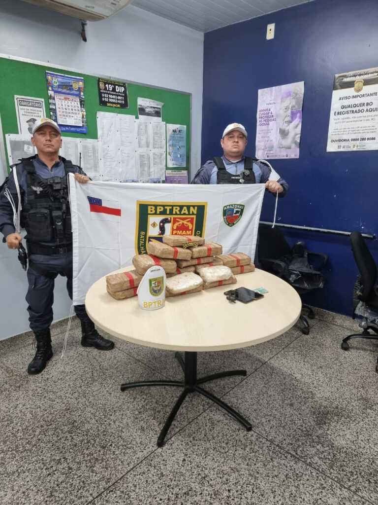 A Polícia Militar do Amazonas (PMAM), por meio do Batalhão de Policiamento de Trânsito (BPTran), prendeu três homens, de idades não informadas, e apreendeu 17 tabletes de entorpecentes, na noite desta segunda-feira (15/01), em Iranduba (a 27 quilômetros de Manaus).