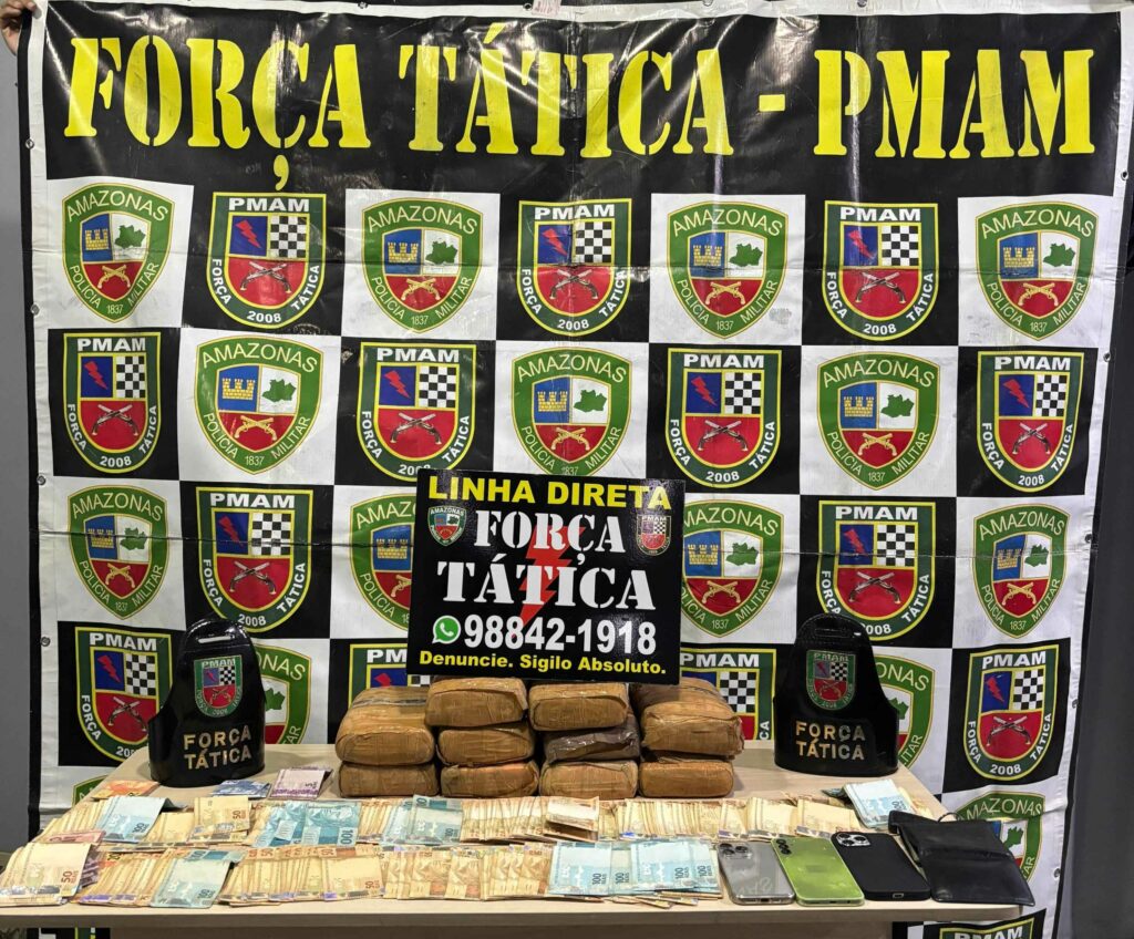 A Polícia Militar do Amazonas (PMAM), por meio da Força Tática, prendeu três pessoas, de 27, 26 e 47 anos, e apreendeu dez tabletes de maconha do tipo skunk, na tarde de quarta-feira (10/07), no bairro Monte das Oliveiras, zona norte de Manaus.