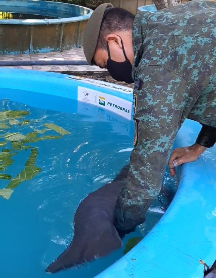 Policiais militares do 2º Batalhão de Polícia Militar (BPM), com o apoio de servidores da Secretaria de Estado do Meio Ambiente (Sema), realizaram, na manhã desta terça-feira (09/06), a condução de um filhote de peixe-boi para ser entregue ao Batalhão de Policiamento Ambiental em Rio Preto da Eva, distante 57 quilômetros de Manaus. O resgate do mamífero aconteceu na tarde de segunda-feira (08/06), no bairro da Paz, município de Itacoatiara, a 276 quilômetros da capital.