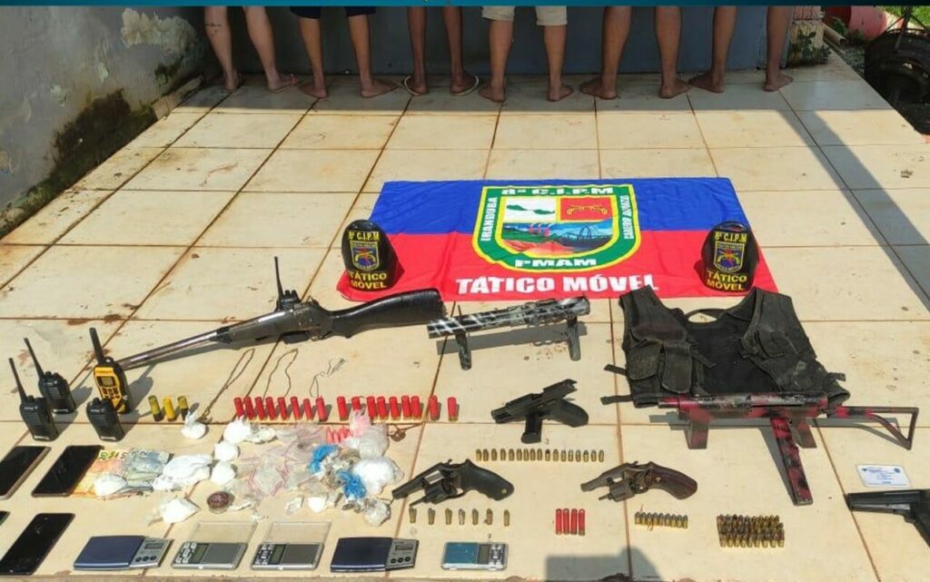 Em ações distintas no Careiro Castanho (a 88 quilômetros de Manaus), uma mulher de 24 anos foi presa por tráfico de drogas e porte ilegal de arma de fogo. Na residência da mulher, os policiais militares encontraram 18 porções de entorpecentes, entre maconha, oxi e cocaína, uma espingarda calibre 20, uma balança de precisão e 30 munições, além de R$ 350 em espécie. A mulher foi conduzida até a delegacia do município.