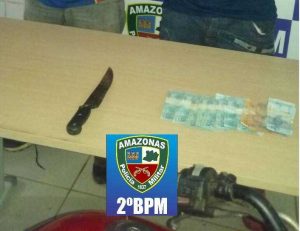 Imediatamente, a equipe policial deu ordem de parada aos dois, e ao proceder a abordagem, com revista minuciosa, foram encontrados em posse deles R$ 961. Além da quantia, foi apreendido com os dois, ainda, um facão que estava escondido na cintura de um deles. Os dois receberam voz de prisão e foram conduzidos para a delegacia de Itacoatiara para as providências de polícia judiciária.