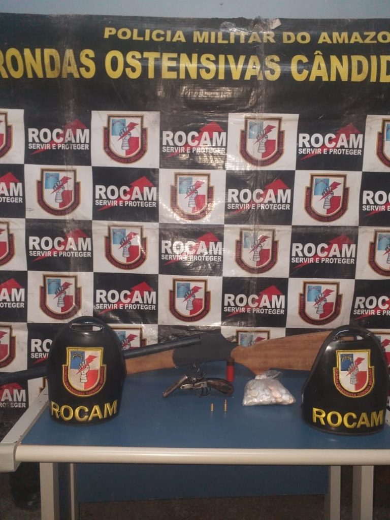 Policiais militares das Rondas Ofensiva Cândido Mariano (Rocam) detiveram, por volta das 17h deste domingo (1º/12), um jovem de 20 anos suspeito de porte ilegal de arma de fogo e tráfico de drogas. Com ele, os policiais apreenderam um revólver calibre 22 com numeração suprimida, uma espingarda caseira calibre 12 e 125 trouxinhas de entorpecentes tipo oxi.