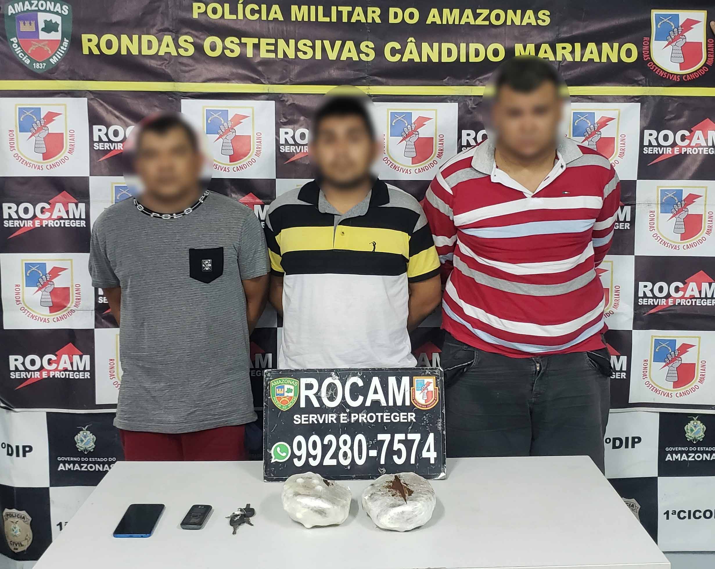 Policiais militares das Rondas Ostensivas Cândido Mariano (Rocam) detiveram, no início da noite desta segunda-feira (28/10), três homens suspeitos de tráfico de drogas no Centro da cidade. Com eles, os policiais apreenderam dois quilos supostamente de pasta base de cocaína e um veículo de placas JXU-2C56.