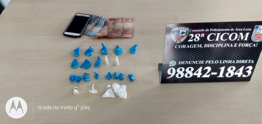 No bairro Colônia Antônio Aleixo, zona norte, um homem de 24 anos foi preso por policiais da 28ª Cicom na rua Nova Mutum, ao ser abordado em atitudes suspeitas portando 22 trouxinhas de entorpecentes.