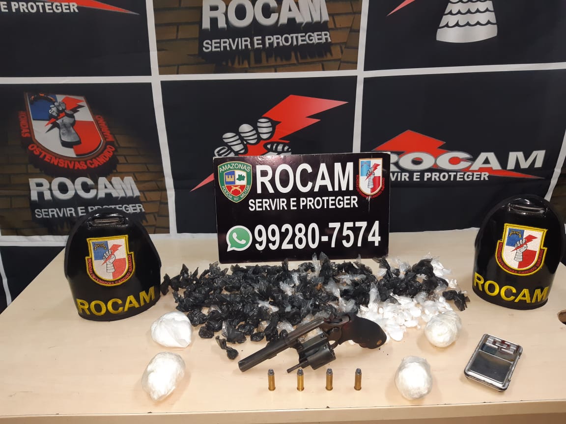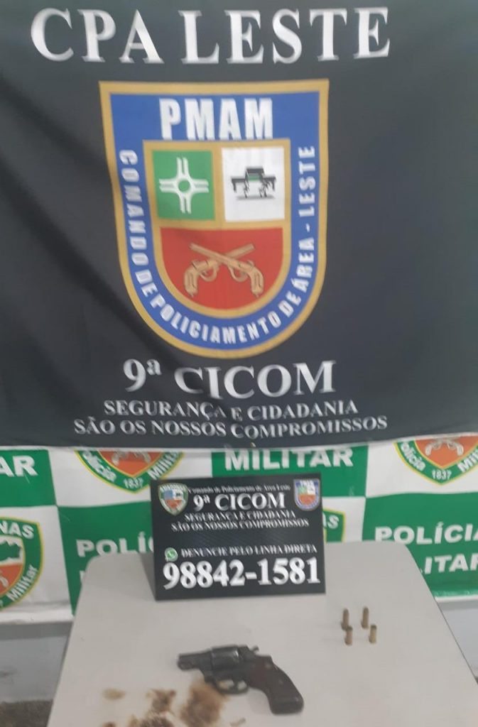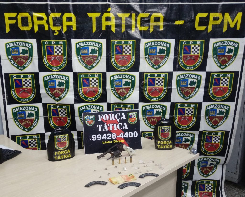 A Força Tática prendeu um homem de 23 anos pelo crime de porte ilegal de arma de fogo rua Canaã, bairro Cidade de Deus, zona norte. Com o indivíduo, foi encontrado um revólver calibre 38, quatro munições intactas, 12 trouxinhas de oxi, maconha e cocaína além de R$ 20 em espécie. O infrator foi apresentado no 6º DIP para os procedimentos legais.