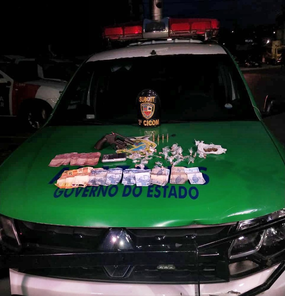 A Polícia Militar do Amazonas (PMAM), por meio da 3ª Companhia Interativa Comunitária (Cicom), prendeu, na noite de terça-feira (11/02), dois homens, de 18 e 20 anos, com arma de fogo, dinheiro e porções de entorpecentes, durante a ação “Guardião”, no bairro Petrópolis, zona sul da capital amazonense.
