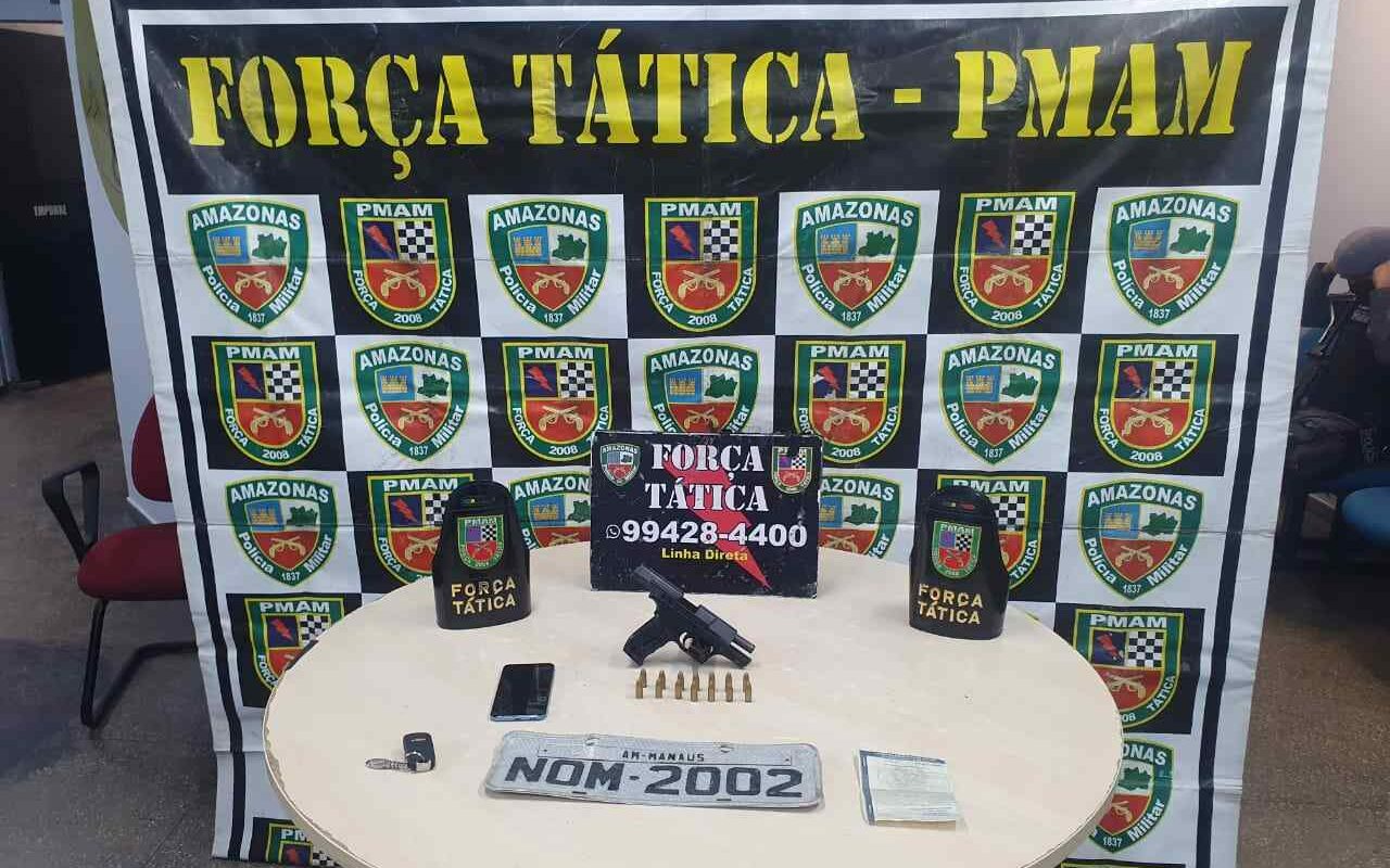 Policiais militares da Força Tática prenderam dois homens, de 23 e 25 anos, na noite de terça-feira (02/10), com arma de fogo e munições, no loteamento Cidade Alta, no bairro Jorge Teixeira, 4ª etapa, zona leste.
