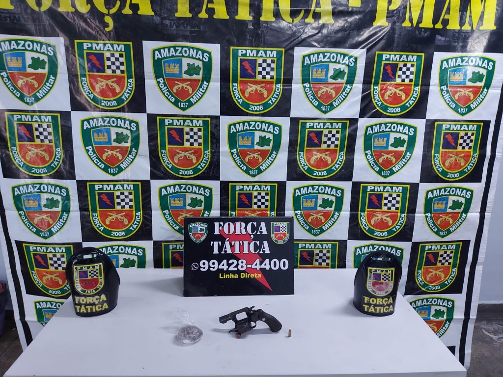 Policiais militares da Força Tática detiveram, na tarde de sábado (26/12), um homem de 22 anos por porte ilegal de uma arma de fogo em via pública e envolvimento com o tráfico de drogas, no Centro, na zona sul de Manaus.