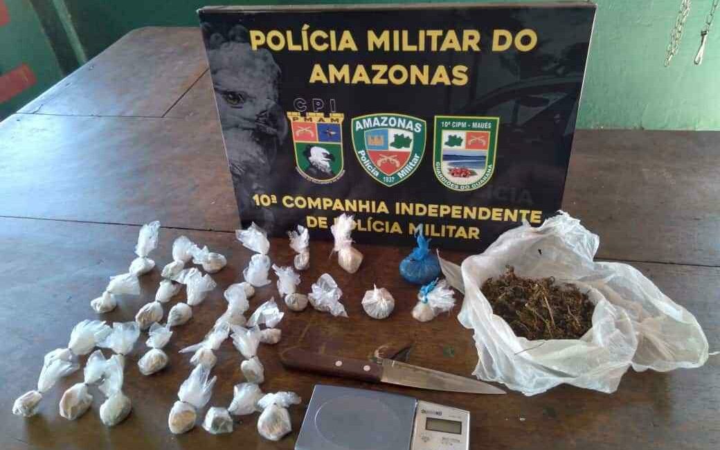 Policiais militares da 10ª Companhia Independente de Polícia Militar (CIPM) prenderam, na madrugada desta quinta-feira (27/05), por volta da 0h30, um homem suspeito de envolvimento com o tráfico de drogas, apontado de estar comercializando entorpecentes na área externa do Mercado Municipal em Maués (a 276 quilômetros de Manaus).