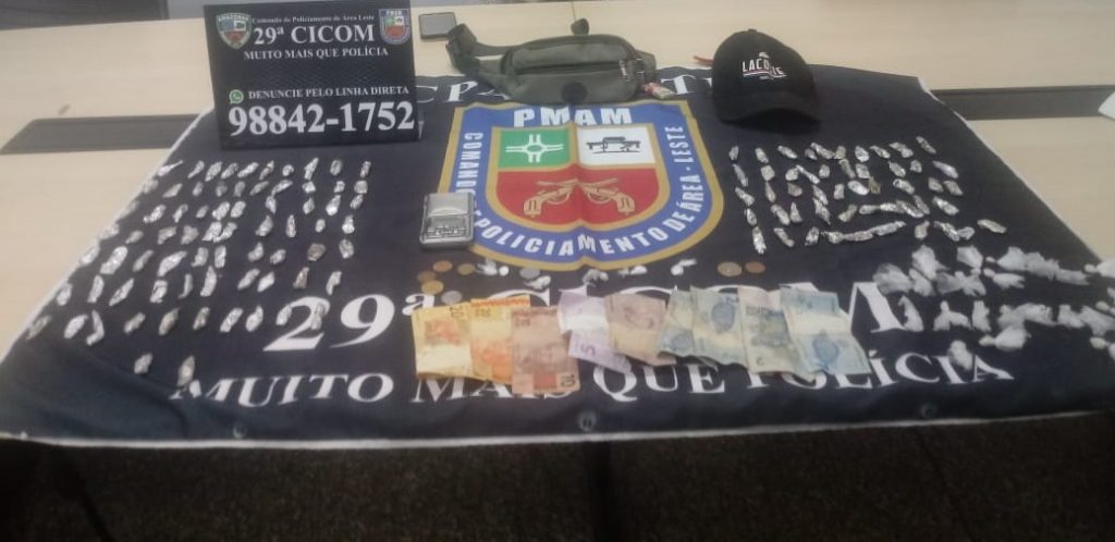 Policiais militares da 29ª Companhia Interativa Comunitária (Cicom) detiveram na segunda-feira (26/10), por volta das 17h, um homem de 20 anos, em posse de substâncias entorpecentes de diversos tipos. Ele tentava fugir de uma abordagem policial no bairro Mauazinho, zona leste da cidade.