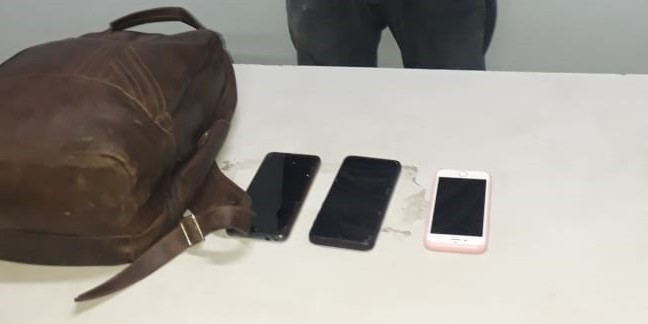 Durante revista pessoal no suspeito, os policiais encontraram três aparelhos celulares de diversas marcas e modelos. Diante dos fatos, ele recebeu voz de prisão e foi conduzido ao 1º Distrito Integrado de Polícia (DIP) para os procedimentos legais.