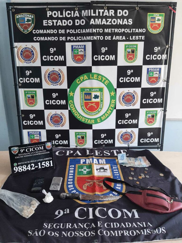 Durante patrulhamento dentro da operação Relâmpago, por volta das 11h, uma equipe policial da Cicom recebeu informações de populares relatando a prática ilícita da venda de entorpecentes. O delito estaria sendo cometido por indivíduos em uma margem de igarapé, nas imediações de um parque de diversões, situado na avenida Autaz Mirim, zona leste.