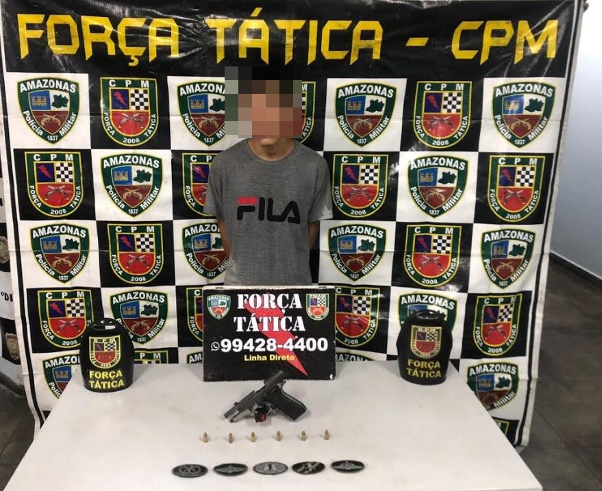 Durante revista pessoal, os policiais encontraram com o mesmo, uma pistola calibre 380 com as munições. Diante dos fatos foi dada voz de prisão ao suspeito que foi conduzido ao 1º Distrito Integrado de Polícia (DIP) para os procedimentos legais. Na delegacia foi constatado que o suspeito já possui passagem pela polícia pelo crime de tráfico de drogas.
