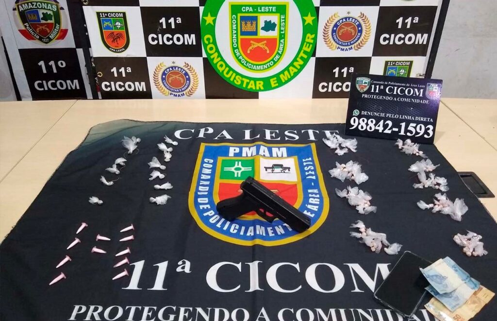 Policiais da 24ª Cicom prenderam um homem de 24 anos na avenida Lourenço da Silva Braga, no Centro de Manaus. Com o suspeito, foram encontradas 81 porções de oxi e R$ 43 em espécie. Ele foi levado ao 1º DIP.