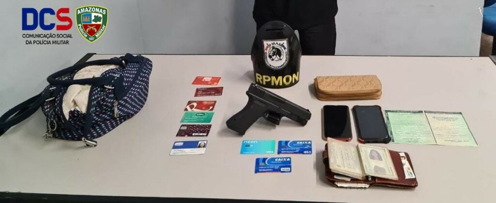 Com o homem foram encontrados alguns objetos e pertences, entre eles uma bolsa feminina, uma carteira feminina e aparelhos celulares, que haviam sido fruto de roubo, além de um simulacro de arma de fogo. Todo o material foi apreendido pelos policiais e encaminhado, juntamente com o infrator, para o 6º Distrito Integrado de Polícia, onde ele ficou à disposição da justiça.