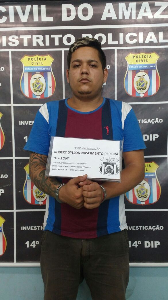 A equipe de investigação do 14° Distrito Integrado de Polícia (DIP), sob o comando do delegado Christiano Castilho, titular da unidade policial, prendeu, em flagrante, no início da tarde de terça-feira (28/11), por volta de meio-dia, Robert Dyllon Nascimento Pereira, 23, por porte irregular de arma de fogo de uso permitido.