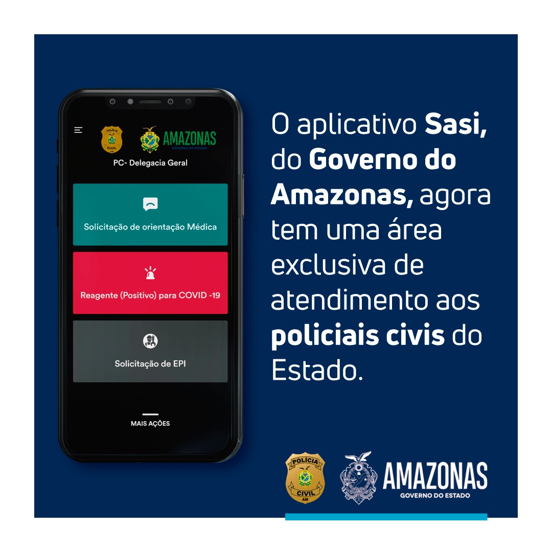 O aplicativo Sasi, ferramenta utilizada pelo Governo do Amazonas nesse período de enfrentamento ao novo coronavírus (Covid -19), agora tem uma área exclusiva de atendimento aos policiais civis do Estado. Além de auxiliar a corporação no controle dos infectados e afastados por motivos de saúde, o aplicativo permite aos policiais a requisição de Equipamentos de Proteção Individual (EPI´s), como máscaras e luvas, e a solicitação e orientação de consultas médicas e testes para o Covid-19.