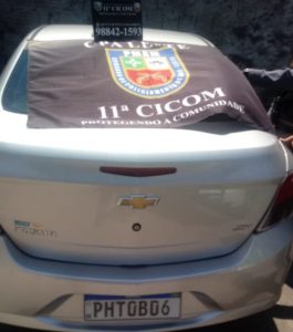 Os policiais foram informados, via linha direta, sobre um veículo abandonado no local mencionado. A equipe foi até o endereço e conseguiu identificar o carro de placa PHT 0B06.