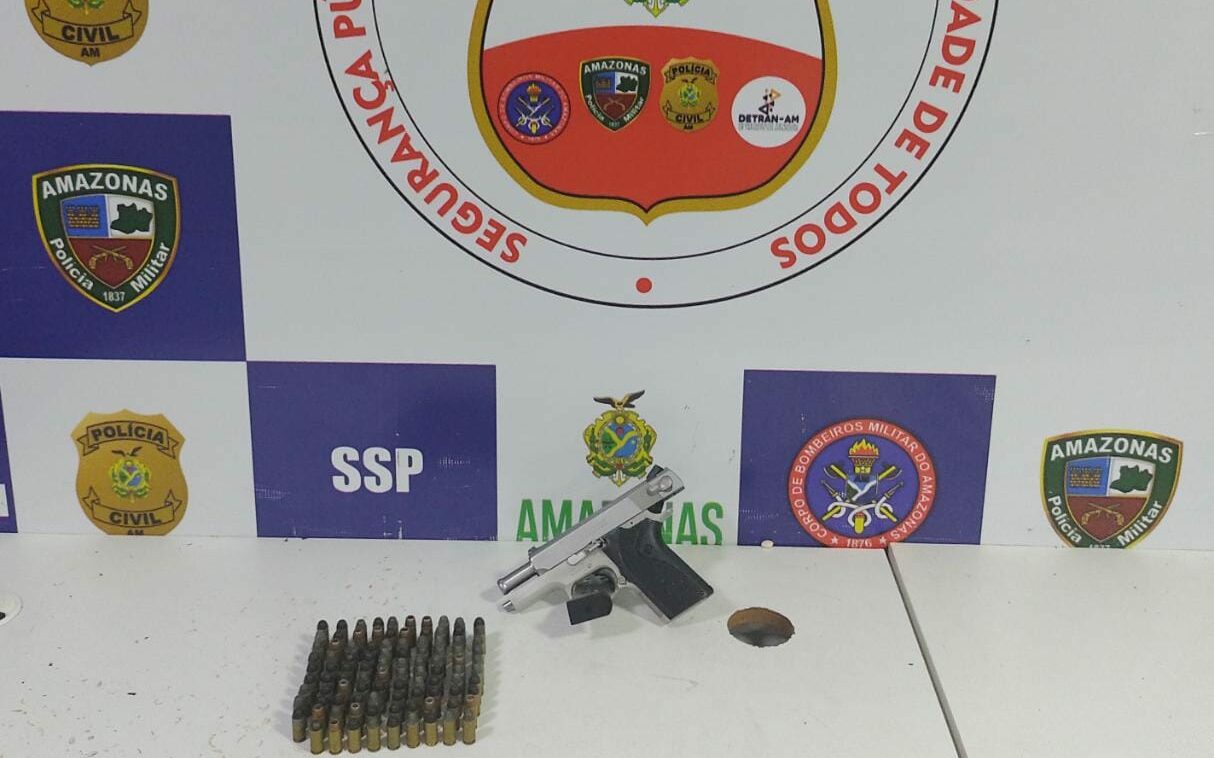No local, os policiais encontraram os suspeitos com uma pistola importada de calibre 40 e 99 munições do mesmo calibre. Os dois foram encaminhados à Delegacia de Polícia Civil da Base Arpão, onde foram autuados por porte ilegal de arma de fogo.