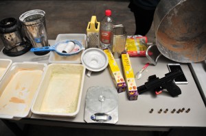 No lugar os policiais apreenderam mais 2,5 quilos de pasta base de cocaína, uma prensa e material para embalo e preparo da droga. Ao todo, cerca de 11,5 quilos foram encontrados nos dois imóveis.