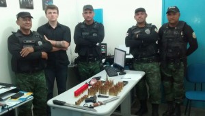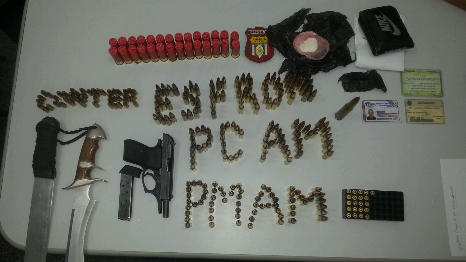 No quarto da casa onde ele morava foram encontrados: um punhal, um facão, uma pistola preta 380, 50 munições calibre 9mm, 22 munições calibre 380, uma munição calibre ponto 50, 203 munições calibre 762 e 28 cartuchos calibre 16.