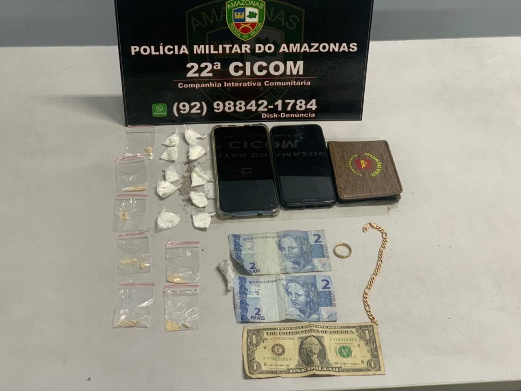Policiais militares da 22ª Companhia Interativa Comunitária (Cicom) detiveram, na noite desta terça-feira (25/08), dois homens por tráfico de drogas no bairro Nossa Senhora das Graças, zona centro-sul da capital. Com eles, os policiais apreenderam dez trouxinhas de supostamente oxi, sete trouxinhas de supostamente skunk, uma trouxinha de supostamente maconha, dois aparelhos celulares, uma carteira porta-cédulas, um cordão amarelo, um anel e a quantia R$ 4,00 em espécie.