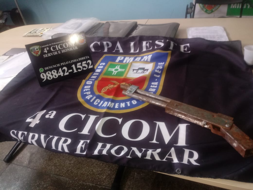 Policiais militares da 4ª Companhia Interativa Comunitária (Cicom) apreenderam, na tarde desta quarta-feira (1º/04) um adolescente de 13 anos, suspeito de envolvimento em roubo e porte ilegal de arma de fogo no bairro Grande Vitória, zona Leste da capital. Com ele, os policiais apreenderam uma arma de fabricação caseira, tipo escopeta, e um veículo modelo Kwid de placas QUI-2434, que tinha acabado de ser roubado.