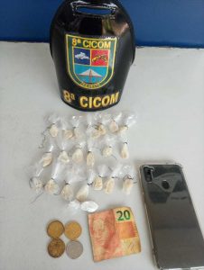 Policiais militares da 8ª Companhia Interativa Comunitária (Cicom) apreenderam, na manhã deste sábado (12/09), um adolescente de 17 anos por ato infracional análogo ao crime de tráfico de drogas, no bairro Compensa, zona oeste da capital. Com ele, os policiais apreenderam 20 trouxinhas de supostamente oxi, uma trouxinha de supostamente cocaína, um aparelho celular e a quantia de R$ 21,00 em espécie.