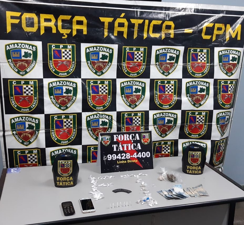 Policiais militares da Força Tática detiveram, na noite deste domingo (22/03), um homem de 27 anos suspeito de tráfico de drogas no bairro Novo Israel, zona norte da capital. Com ele, os policiais apreenderam 38 trouxinhas supostamente de cocaína, 22 trouxinhas supostamente de pasta base de cocaína, sete pinos supostamente de cocaína, duas porções supostamente de pasta base de cocaína, uma porção supostamente de maconha, duas balanças de precisão, um aparelho celular Samsung e a quantia de R$ 20,00 em espécie.