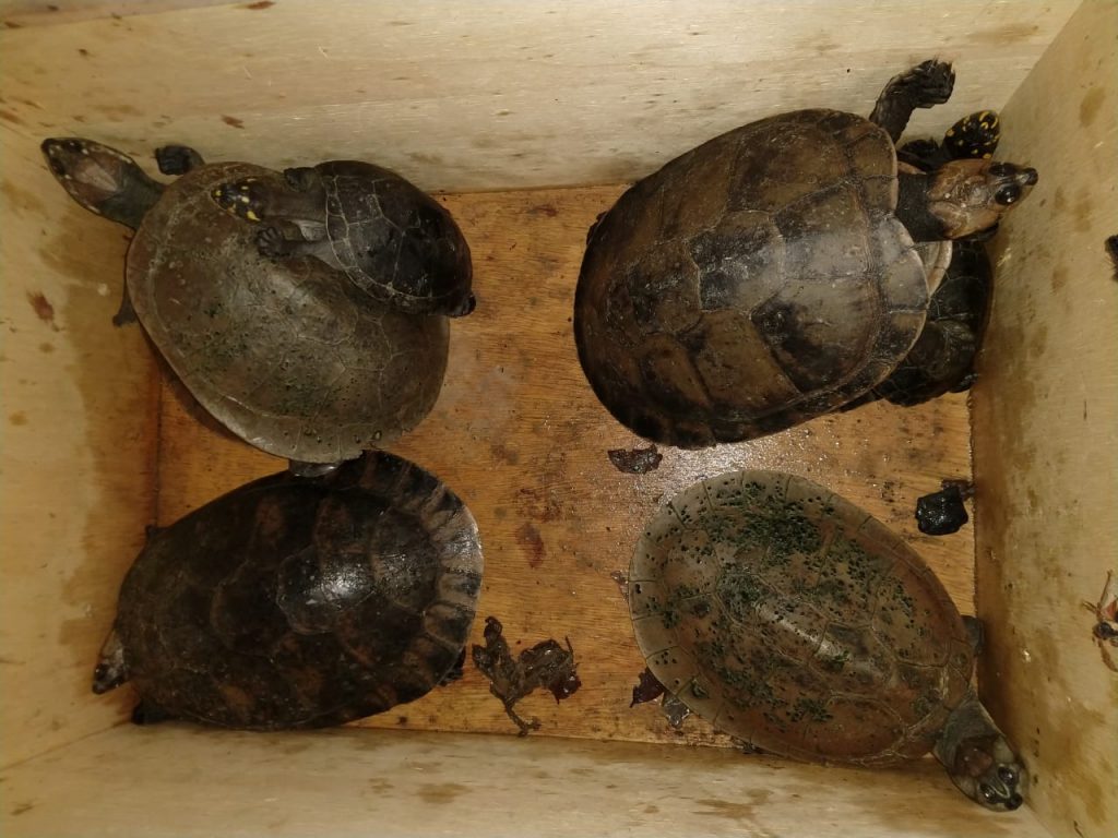 Ao ser indagada sobre a denúncia, a mulher informou que seu esposo guardava quelônios no quintal e autorizou a entrada dos policiais em sua casa. Durante as buscas no local, os policiais encontraram os quelônios que estavam dentro de uma caixa d’agua. Ainda nas buscas, foram encontrados nove galos guardados em caixas de madeira. Ao verificar as condições dos animais, foi constatado que dois deles estavam bastante debilitados e com alguns ferimentos, configurando os maus-tratos.