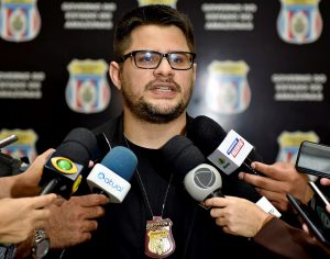 A Polícia Civil do Amazonas, representada pelo delegado Guilherme Torres, diretor do Departamento de Repressão ao Crime Organizado (DRCO), falou na manhã desta quarta-feira (16/05), durante coletiva de imprensa realizada às 9h30, no prédio da Delegacia Geral, sobre a prisão do foragido da Justiça do estado do Rio Grande do Norte Sued da Cunha Muniz, 38, condenado por roubo majorado e formação de quadrilha. O tenente da Polícia Militar do Amazonas (PMAM) Tales Renan, da 23ª Companhia Interativa Comunitária (Cicom), também participou da coletiva.