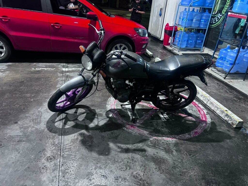 Após consultar o chassi, foi verificado que a motocicleta, de placa NON-0516, tinha restrição de furto. O caso foi encaminhado para o 1º DIP.