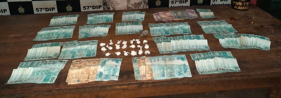 Na ação foi apreendida uma porção de entorpecente supostamente maconha tipo skunk, 20 porções de entorpecente supostamente oxi e R$ 16.441,00 em espécie.