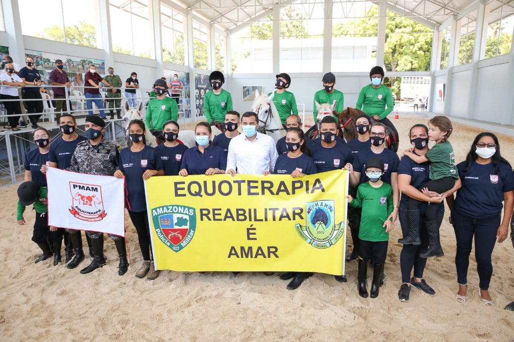 O Fundo de Promoção Social e Erradicação da Pobreza (FPS), do Governo do Estado, inaugurou, nesta terça-feira (03/11), as instalações do núcleo de equoterapia da Polícia Militar do Amazonas (PMAM). A obra, que contou com investimento de R$ 2.828.279,86, vai beneficiar as famílias atendidas pelo projeto, que recebe pacientes com paralisia cerebral, autismo, hiperatividade, deficiência auditiva, síndromes de Down, de Asperger e de West, entre outras, para aplicação de método terapêutico e educacional com o uso de cavalos.
