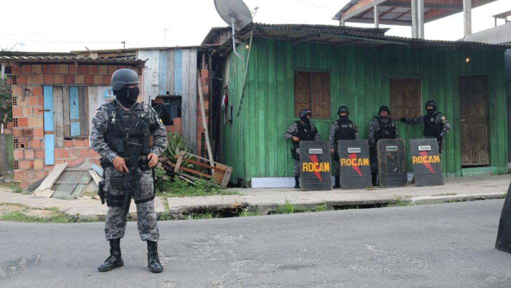 Cumprindo determinação da Justiça do Amazonas, o Gabinete de Gestão Integrada da Secretaria de Segurança Pública (SSP-AM) mobilizou policiais militares e civis para cumprir um mandado de reintegração de posse em um lote de terras, situado na rua F, conjunto Jardim Amazonas, bairro Flores, zona centro-sul de Manaus.