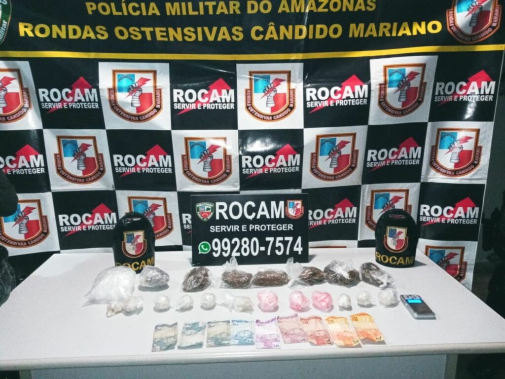 Policiais militares das Rondas Ostensivas Cândido Mariano (Rocam), em diferentes ações entre a tarde e noite de quinta-feira (13/05), apreenderam um adolescente de 17 anos e detiveram um homem de 25 por envolvimento com o tráfico de drogas. Durante as ações, foram apreendidos mais de 20 quilos de entorpecentes.