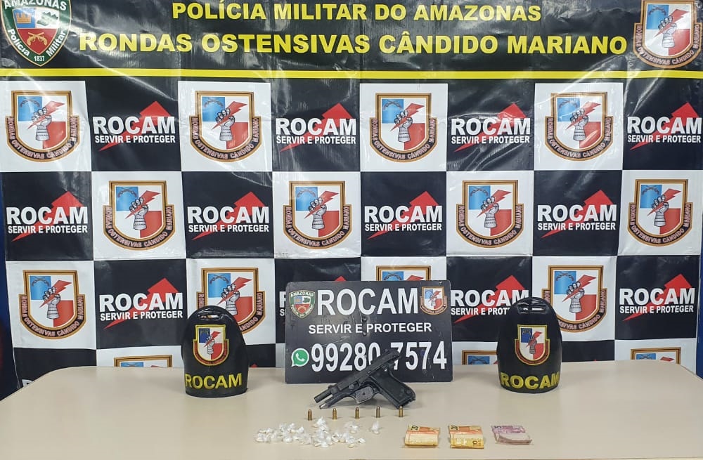 A Polícia Militar, por meio das Rondas Ostensivas Cândido Mariano (Rocam), apreendeu, na noite de segunda-feira (25/01), uma arma de fogo, munições e drogas, após intervenção policial numa área de mancha criminal, situada no bairro Nova Cidade, na zona norte da capital.