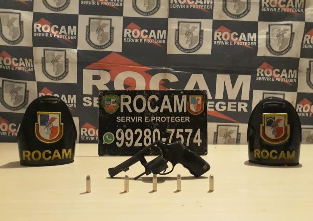 Porte ilegal – No bairro Cidade de Deus, uma mulher de 30 anos foi detida, suspeita de porte ilegal de arma de fogo. Os militares foram acionados pelo telefone linha direta da Rocam, com a informação de que um homem conhecido por “Gordo” mantinha uma arma irregular em sua residência, na rua São João. No local indicado na denúncia, a equipe encontrou, em uma cômoda da casa do suspeito, um revólver calibre 38 com numeração suprimida e cinco munições intactas. A mulher presente no local, supostamente companheira do denunciado, foi conduzida ao 6° DIP para os procedimentos legais.