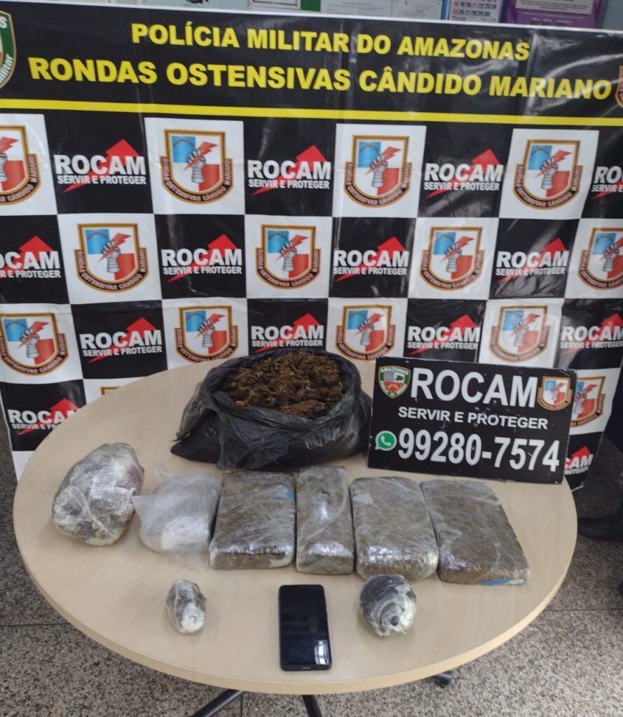 Policiais militares das Rondas Ostensivas Cândido Mariano (Rocam) apreenderam cinco tabletes de entorpecentes e detiveram um homem de 33 anos, ligado ao tráfico de drogas, na manhã do último sábado (10/04), na zona oeste da capital.