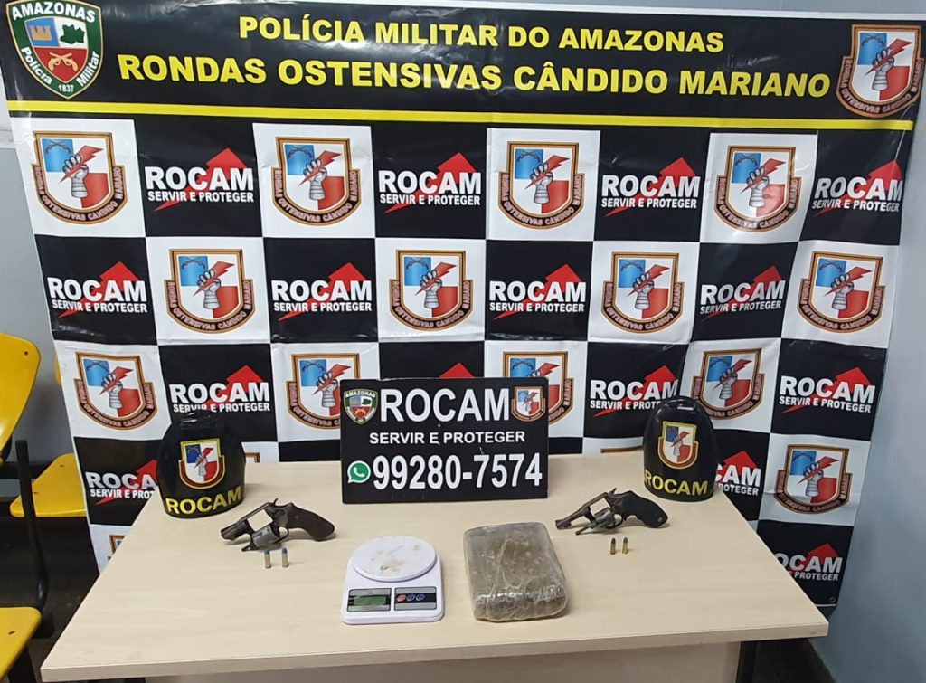 Policiais militares das Rondas Ostensivas Cândidos Mariano (Rocam), na tarde desta quarta-feira (29/07), detiveram dois homens, de 20 e 28 anos, por tráfico de drogas e posse de arma fogo, na rua Santa Rosa, beco Santarém, bairro Braga Mendes, zona norte de Manaus.