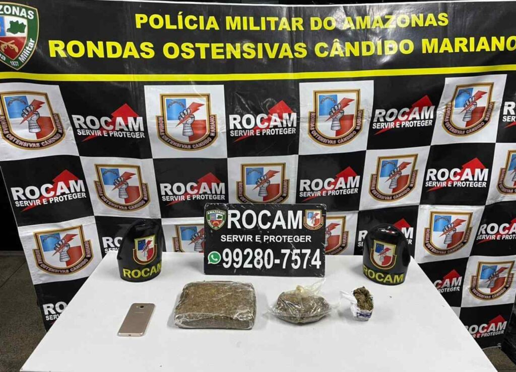 Policiais militares das Rondas Ostensivas Cândido Mariano (Rocam) detiveram, no início da madrugada desta quinta-feira (27/05), um homem de 26 anos em posse de mais de um quilo de entorpecentes, no bairro Petrópolis, na zona sul.